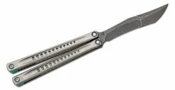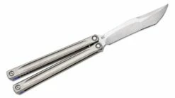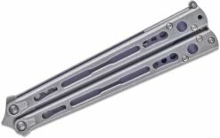 The Alpha Beast is not only the flagship model for BRS, but possibly the front-runner for the balisong flipper community. Designed by and for flippers, the BRS Alpha Beast prides itself on breaking the accepted design cues of previous knives while fixating on weight, balance and tactility. Built from the ground up with performance at the forefront of design. Dimensions are centered around optimal manipulation. It features Bladerunners System’s Signature Chevron System for immediate and constant haptic feedback and grip. It is optimally balanced for a variation of flipping styles and is a BEAST on all fronts. There isn’t a flex to be found in the handle and the smooth action yields excellent manipulation. The alt blade and subtly milled titanium handle make for one darn good-looking butterfly knife that is superbly built for hard daily use. The 3.0 version of the Alpha Beast features BRS’ more robust hardware in the form of a 0.187″ pivot with T10 Torx screws and 1/4″ stainless steel bushings, sex bolt spacers, through tang clips and improved overall tolerances. The result is without a doubt one of the finest and smoothest butterfly knives on the market. We are fortunate to be a dealer for Bladerunners Systems and bring this amazing product to you.