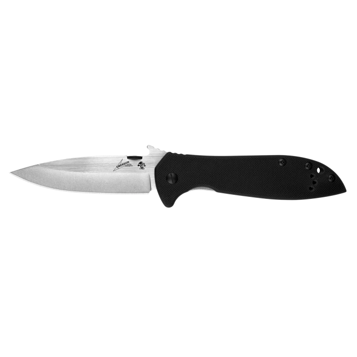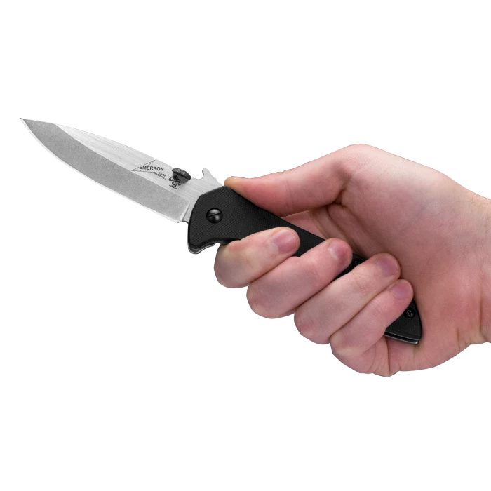 - G10 front scale with stainless steel back and Emerson contouring for secure, comfortable grip