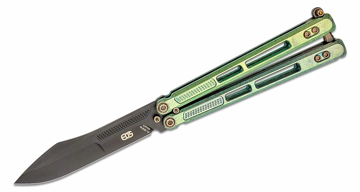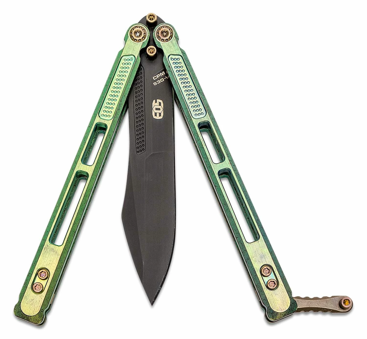 EOSTRDTAGRBK Trident Butterfly Knife, Antique Green, Black Blade
