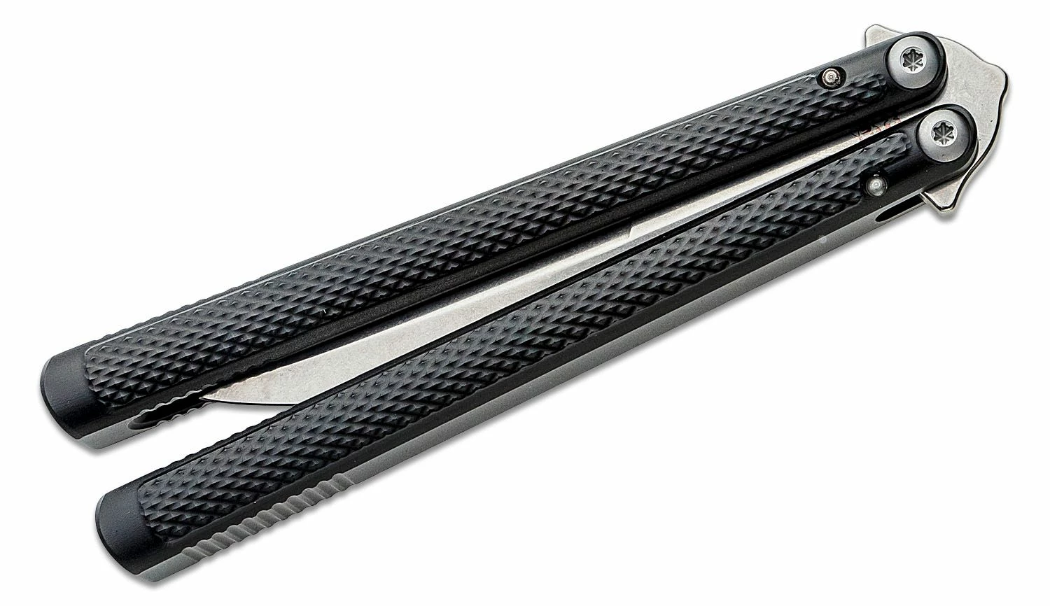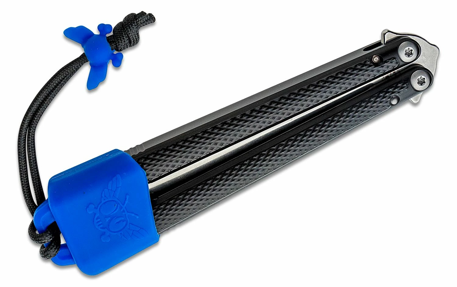 Made by flippers, for flippers, the Talisong Z is Flytanium’s sleek take on the balisong. The Talisong Z was designed by renowned balisong maker, Eldon Talley. The Talisong Z features milled aluminum handles that are contoured and knurled to make tricks easier while being ergonomic and lightweight. The handles are type II anodized for improved abrasion and corrosion resistance. The Scimitar-style blade is made from AEB-L, a steel prized by custom knifemakers for its great toughness, high hardness, and corrosion resistance. It has a stonewashed finish and a crowned spine, making for a knife that is comfortable to flip, and one that hides scratches. The custom-made pivots are micro-adjustable and include ceramic ball bearings and hardened steel washers, a combination that provides incredible strength and absolute minimum friction. The knife utilizes custom-made zen pins. The knife can be tuned to perfection with the fine-threaded pivot screws.