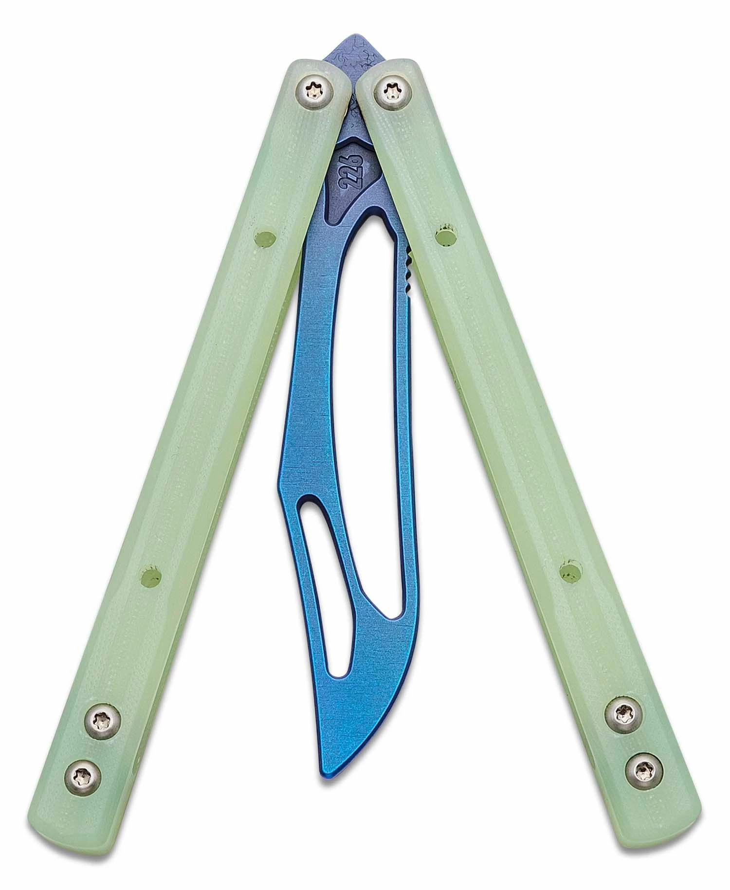 The Orca Trainer is another integral handle balisong from JK Designs that is finally here after an extended wait. We first saw this at BLADE Show 2021 – were super excited about it back then and that’s only escalated in the time since. Julian has dialed in his butterfly knives so precisely that the main difference he’s concerned with now is whether his customers prefer bushing or bearing pivots. Each has a distinct feeling; the bushing being a little softer and lighter, while the bearings are just so smooth and have that amazing sound with each flick. The Orca – and the subsequent Monarch – are, in our minds, the premier balisongs on the market today…don’t miss out on the trainer variant that’s been more than a year in the making.