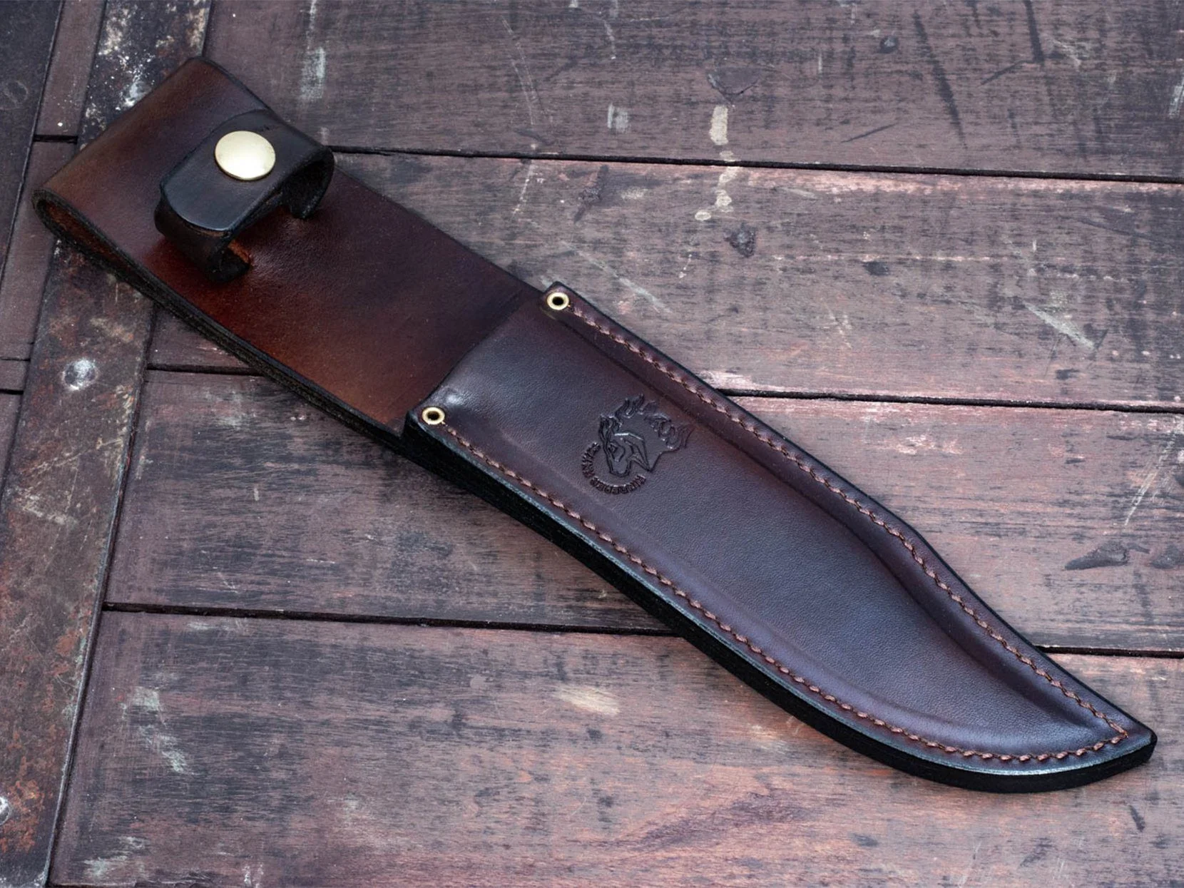 Custom premium leather sheath by Woodland Harness
