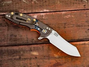 Containment Series, This Special Series we started a couple years ago. With this series we start with a base knife and add unique gas mask graphics which are laser engraved into the titanium. Each year we use a different “gas mask” design thereby making each knife more unique. The finish and overall appearance of each knife is also different and unique and made in a very limited number. The RHK Containment Series has always been a very popular RHK offering!